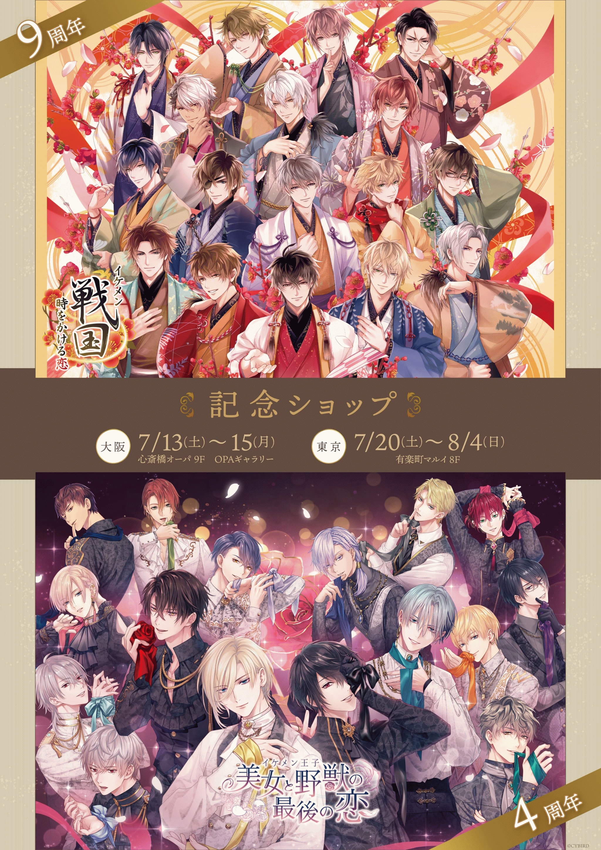 『イケメン戦国◆時をかける恋』9周年&『イケメン王子 美女と野獣の最後の恋』4周年を記念して大阪と東京で期間限定SHOPを開催!