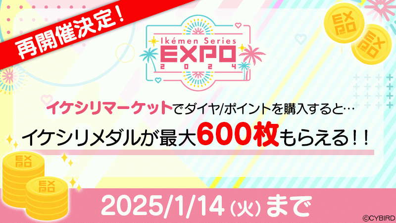 ※1月14日に23:59:59までにイケシリマーケットで購入した総額に応じてメダルが貰えます。このイケシリメダルは1/21 12時以降に取得できます。