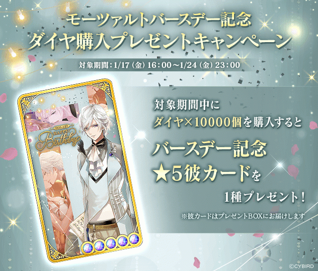 【モーツァルトバースデー記念】イケシリマーケットで「ダイヤ×10000個」以上購入をすると★5彼カードをプレゼント!