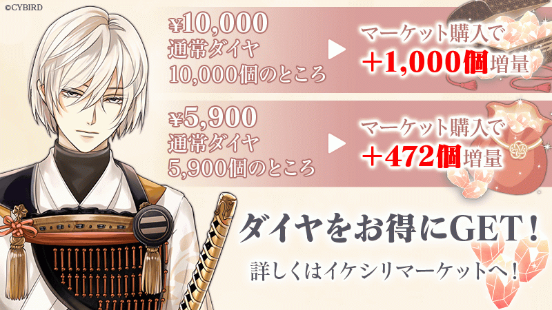 リリース記念ダイヤ増量キャンペーン開催中★8月29日12時からご利用できるイケシリマーケットは最大6,000個のおまけ!