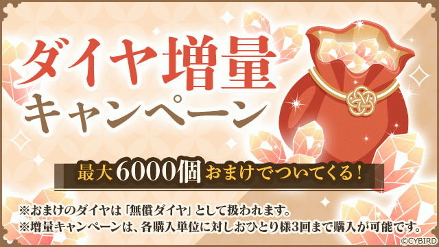 ダイヤ購入におまけがつく、超お得な増量キャンペーン開催中!