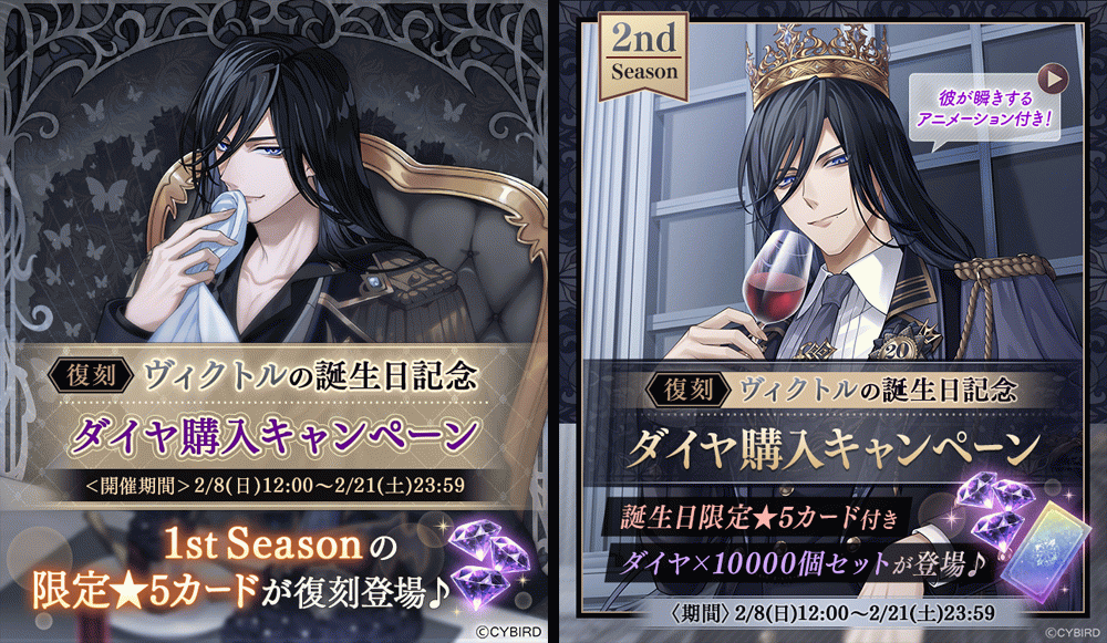イケメンヴィラン【ヴィクトル誕生日記念キャンペーン♪】ダイヤ×1000個&ポストカードスチルがおまけで付いてくる!