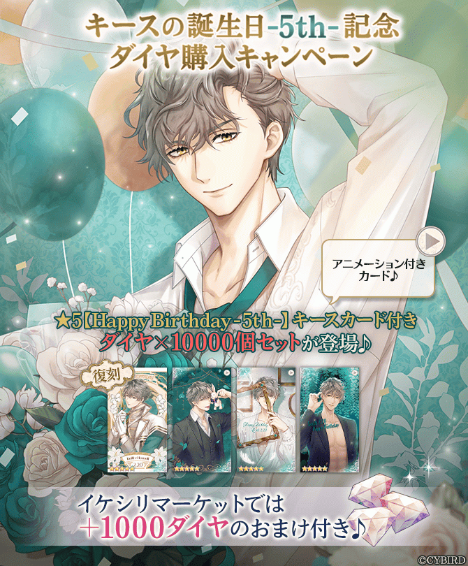 イケメン王子【キース誕生日記念キャンペーン♪】イケシリマーケットではダイヤ×1000個がおまけで付いてくる!