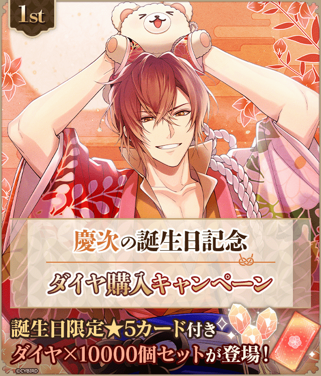 ※イケシリマーケットに期間限定で追加された「ダイヤ×10000個(有償ダイヤ10000個+★5カード慶次1st)」を購入すると、「【2026年誕生祭カード】慶次」を受け取り箱にお贈りします。