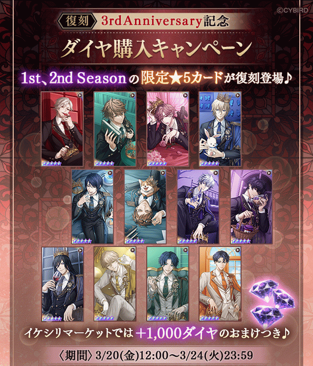 イケメンヴィラン【ダイヤ×1000個がおまけで付いてくる!】3rd Anniversary記念ダイヤ購入キャンペーン開催中!【イケシリマーケットのみ3/24(火)23:59】まで!
